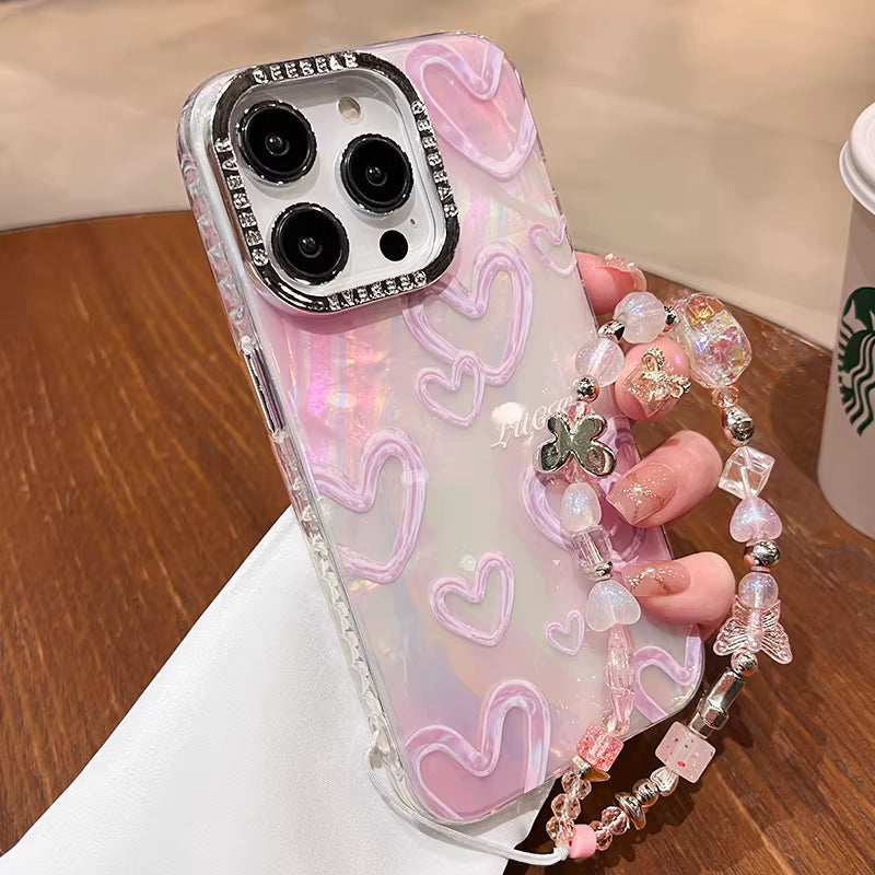 Add a dreamy touch to your phone with this elegant iridescent heart iPhone case. Designed with a glossy, pearl-like finish, the case reflects soft rainbow hues under light, giving your phone a magical glow. Raised pastel heart patterns add a cute and romantic vibe, perfect for aesthetic lovers.